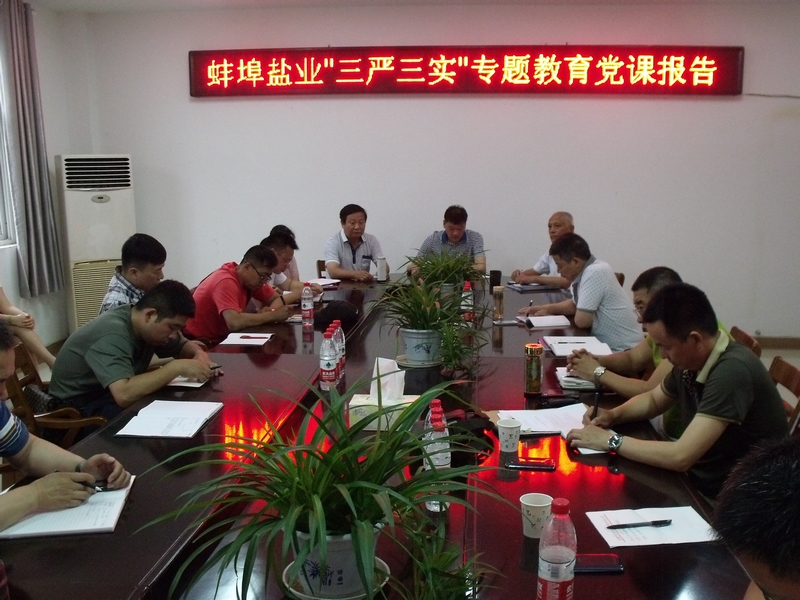 会上,党委书记邱军首先传达了省总公司党课报告会主要精神和詹总党课报告的主要内容,并结合蚌埠盐业实际,作了题为《严实履职尽责,扎实推进蚌埠盐业的改革与发展》的党课报告。在党课报告中,邱军带领广大党员干部认真学习了习总书记提出的“三严三实”的重要内容,深刻认识了开展“三严三实”专题教育的重要背景和重大意义,深刻理解“三严三实”丰富的思想内涵,要求广大党员干部要站在战略和全局的高度,深刻认识开展“三严三实”专题教育的重大意义,迅速把思想和行动统一到省总公司党委的决策部署上来。