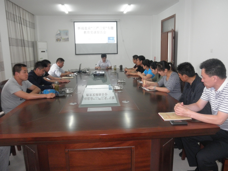会上,许广宏书记带领大家认真学习了习近平总书记提出的“三严三实”的重要内容和詹总党课报告的主要内容,并结合怀远公司实际工作作了题为《践行“三严三实”要求 打好怀远盐业转型发展攻坚战》的党课报告。在报告中,他要求全体党员要理论联系实际,密切联系群众,认真践行“三严三实”要求,进一步加强党性修养,弘扬求真务实精神,以扎实有效的工作全力推进怀远盐业的改革与发展。