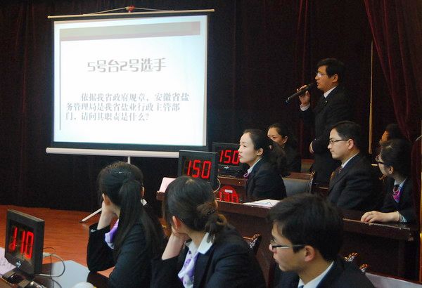 为全面检验全系统解放思想再讨论活动取得的成果,引导广大员工正确把握安徽盐业面临的形势,积极应对当前机遇和挑战,加快推进安徽盐业的各项改革进程,按照活动计划安排,省公司于2012年1月14日在合肥花园宾馆举办了全系统解放思想再讨论活动迎春知识竞赛预赛。省公司领导对本次竞赛非常重视,亲临比赛现场进行指导并和相关处室负责人组成仲裁组。