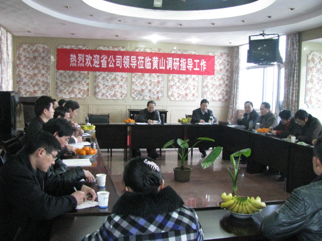 3月15日至17日,省公司总经理詹先豪一行到黄山市公司调研指导工作。在黄山市公司经理董维才等陪同下,詹先豪一行先后走访了黄山市、祁门县和黟县公司。詹先豪一行每到一处,都实地察看当地公司的办公和仓储条件,详细了解企业管理和配送中心运营等情况,还不时询问职工的工作和收入,并与全体职工进行座谈,听取职工的意见和建议。