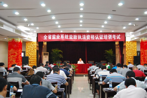 2012年7月4日—5日,全省盐业系统盐政执法资格认证培训考试在合肥市花园宾馆举行,共有115名盐政人员参加了此次培训和考试,考前举行了开班仪式和为期一天半的考前培训。 省政府法制办副主任程利民、省盐务局副局长石俊出席开班仪式并讲话。程利民首先阐述了行政执法和行政执法资格认证制度的意义,并介绍了行政执法人员需要掌握的相关法律知识,最后他希望参加此次培训考试的学员顺利通过考试,成为一名合格的行政执法人员。石俊要求大家要高度重视此次考前培训,认真听课,勤于思考,及时消化吸收,把学到的知识运用的实际工作当中,提升盐政监管水平,推动盐政工作再上新台阶。考试中要严格遵守考场纪律,考出自己的真实水平。 考前培训由省法制办法学专业人士讲授行政法相关知识,省局盐政法规处处长方吉斌就如何进一步做好新形势下盐政监管工作进行讲解。培训内容注重理论性、实践性和可操作性,既有理论宣讲,又有案例分析,听讲互动,生动灵活,特别是结合当前盐政工作实际,对盐政稽查工作的办法和措施进行具体讲解,收到了良好的效果。学员们专心听讲、认真记录,进一步提高了理论水平,丰富了专业知识,理清了工作思路,为通过此次考试和今后的执法工作打下了良好的基础。 本次考试分为《盐业行政执法》和《公共行政法律知识》两部分,考试期间,省盐务局副局长石俊亲临考试现场,详细巡查了考场情况和学员答题情况,考场内秩序井然,学员们认真思考,专心答题,在规定的时间内完成了两门考试。