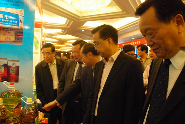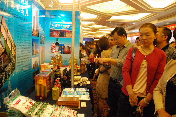 安徽省盐业总公司总经理詹先豪向参会领导介绍安徽盐业非盐商品