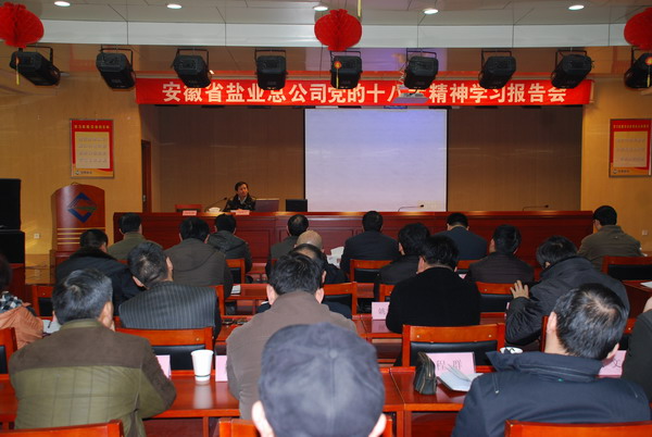 12月25日上午,省盐业总公司党的十八大精神学习报告会在盐业大厦举行。省国资委十八大精神宣讲团成员、铜陵有色集团党校副教授钱曙东作宣讲报告。省盐业总公司党委书记、总经理詹先豪主持报告会并讲话。省国资委十八大精神宣讲团成员刘宪辉、组织宣传处副处长秦正敏出席报告会。各市盐业公司党政主要负责人,各直属(控股)公司领导班子成员,省公司本部全体职工、部分离退休党员约110人参加了报告会。 钱曙东在报告中首先介绍了十八大的背景和主题,深入讲解了十八大报告的基本框架,全面解读了十八大报告的新思想、新观点、新论断。报告围绕十八大主题、主线,重点从科学发展观的历史地位、坚持和发展中国特色社会主义、全面建成小康社会和全面深化改革开放的目标途径、全面提高党的建设科学化水平等方面进行了全面讲解和深刻阐释。整场报告内容丰富、重点突出,系统透彻、深入浅出、生动易懂,使参会人员深受教育和启发。大家纷纷表示,听了国资委宣讲团的宣讲,对十八大的主要内容、深刻内涵、精神实质有了更进一步的领会和把握,报告对于以十八大精神指导实践、推进安徽盐业今后的改革、发展和稳定具有十分重要的指导意义。 詹先豪对安徽盐业系统下一步学习宣传贯彻十八大精神提出了三点要求。一、各单位要切实加强组织领导,精心计划安排,以本次学习报告会为新的契机,按照省公司的学习计划部署,进一步在全系统掀起学习宣传贯彻十八大精神的热潮。二、要深刻领会和把握十八大精神的核心和实质,坚定安徽盐业改革发展的信心和决心。按照省国资委的部署和要求,对照安徽盐业“十二五”战略规划确立的发展目标和发展方向,抓贯彻,抓落实,确保实现“十二五”战略规划的各项目标任务。三、要坚持学以致用,理论联系实际,真正以十八大精神来指导和推动安徽盐业的体制改革、结构调整、产业转型和发展稳定。转变工作作风,杜绝形式主义和“走过场”,以十八大精神为指导,在省国资委的正确领导下,通过全系统的共同努力,切实把安徽盐业发展好,让全体职工充分享受安徽盐业改革发展的成果,为建设“美好安徽”做出新的更大贡献。