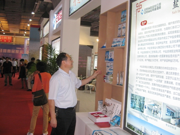 中国关心下一代工作委员会常务副主任兼秘书长、中国盐业协会名誉理事长杨志海参观安徽盐业展台