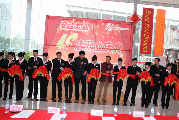 开业当日,4S店内人头攒动,参加开业典礼的嘉宾有省盐业总公司副总经理王良贵、工会主席颜宗华、安徽盐业汽贸有限公司董事长王强、安徽盐业汽贸有限公司副总经理张丽娟和程尚礼,以及比亚迪主机厂代表、媒体代表、合作单位代表、意向和保有客户代表等数百人。开业庆典内容丰富多彩,精彩纷呈,有剪彩仪式、比亚迪L3轿跑推介及试驾、安盐爱迪员工和媒体朋友的爱心捐款,还有拉丁舞、女子鼓乐队等节目。