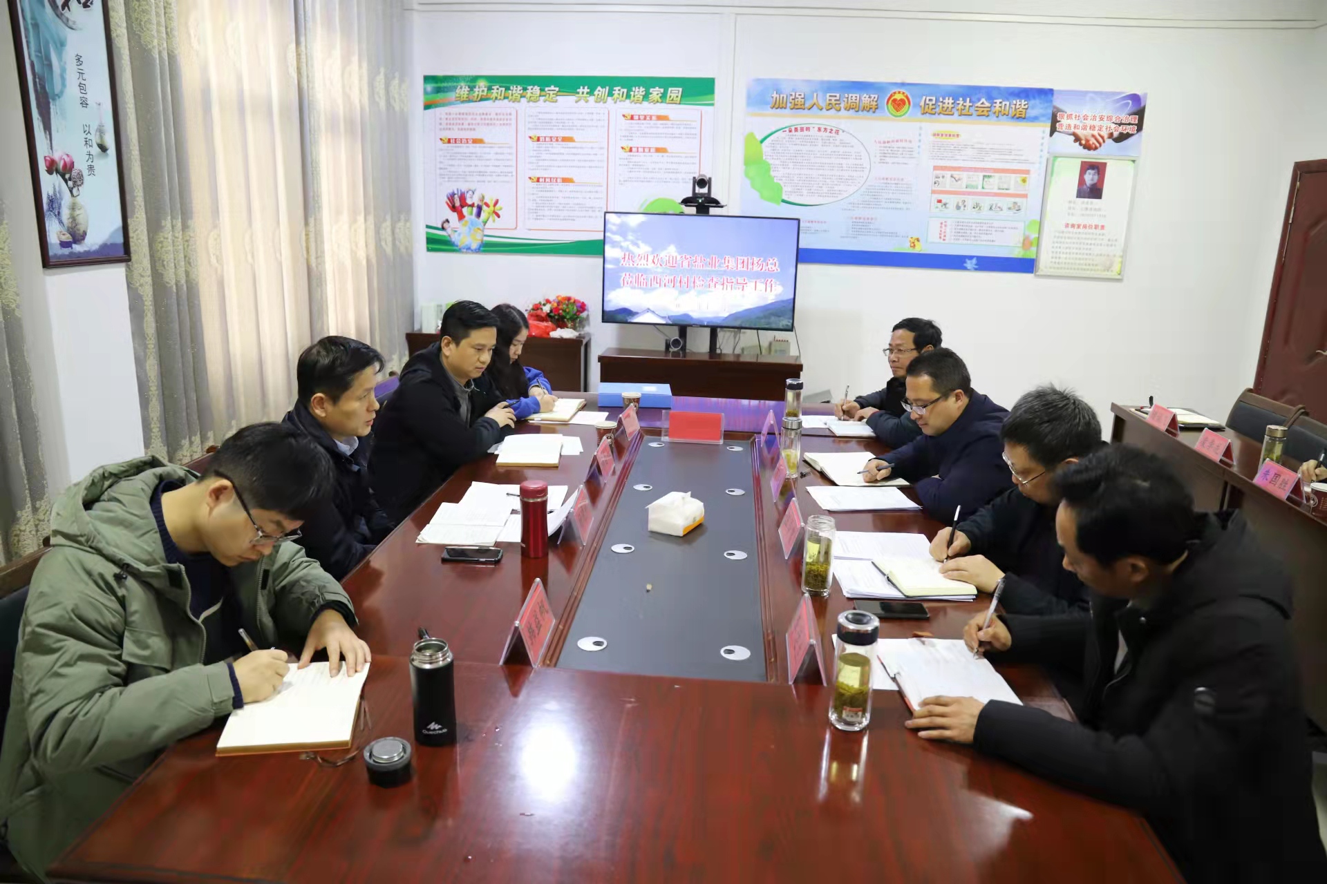 杨晓彬充分肯定了今年以来西河村两委和驻村工作队在巩固脱贫攻坚成果和推动乡村振兴方面做出的努力,对村乡村振兴规划和下一步工作思路给予了肯定,介绍了集团公司党委关于在产业帮扶、消费帮扶、就业帮扶以及文化帮扶等方面的工作安排。他表示,集团公司将针对西河村实际,采取有效措施,深化长效帮扶机制,一如既往地支持推动西河村乡村振兴工作。