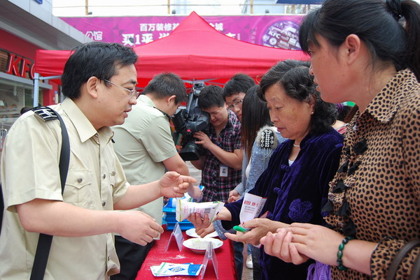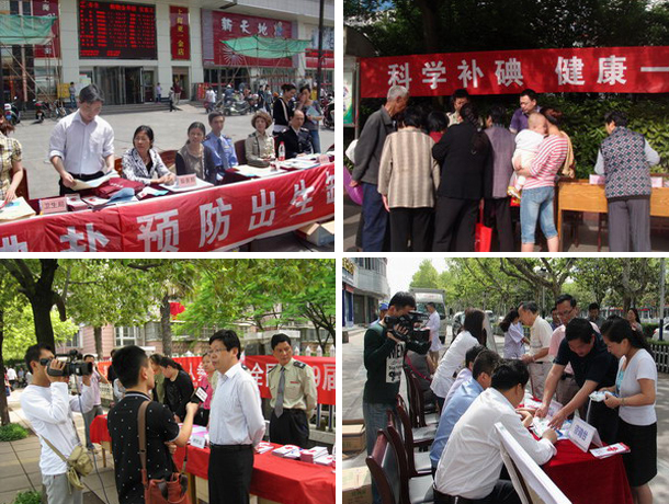 2012年5月15日,是全国第十九个“防治碘缺乏病日”。在省局的统一部署下,全省各地盐业与当地卫生、疾控中心紧密配合,统一行动,紧紧围绕“科学补碘,健康一生”的宣传主题,结合盐行业特点,开展了内容丰富、形式多样的宣传活动。5月15日前后,各地盐业公司纷纷通过广播、电视、网络、报刊等媒介播放公益广告及碘缺乏病宣传片,在零售网点、配送区域设立咨询点散发宣传资料、张贴宣传画、制作宣传栏、赠送宣传品、悬挂横幅、接受现场咨询,以及利用盐政执法检查等多种形式开展了一系列声势浩大的宣传活动。合肥市公司组织人员参加了由省、市卫生部门和盐务部门在家乐福超市广场举办的大型宣传咨询活动,通过发放宣传材料、接受百姓咨询等多种形式宣传消除碘缺乏病的意义,如何辨别真假盐及推广新盐品海藻碘盐,重点宣传了食盐安全举报奖励办法和举报途径。阜阳市局在大型商城及三个区疾控中心门口共设立了四个宣传点,在活动现场,精心制作的十八块宣传展板一字排开,宣传海报内容丰富、主题突出。