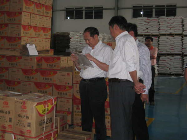 詹先豪、颜宗华一行首先实地察看了蚌埠盐业物流配送中心及2200平方米的钢构仓库。高大敞亮的新仓库里、货架上整齐地陈列了玲珑满目的盐与非盐商品,其中非盐商品已涵盖海天调味、鲁花花生油、太太乐鸡精、菱花味精、旺旺休闲食品、海神黄酒、中糖食糖小包装、中粮食用油及酒水、日化产品等共近20个一线品牌,400多个产品规格。蚌埠市公司经理杨延成向詹先豪、颜宗华一行汇报了蚌埠盐业今年以来主要工作及各项经济指标完成落实情况,并重点汇报了今年企业在发展转型和非盐经营拓展方面所做的具体工作和取得的主要进展。