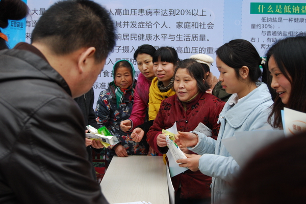 省公司副总经理石俊在讲话中表示为落实好低盐饮食促进健康活动的各项安排,安徽盐业将做好四个方面的工作。一是加大宣传,引导消费者树立低盐饮食新理念。利用媒体宣传、在食盐包装袋及“徽盐连锁”店面印制“低盐饮食有益健康”提示语、与卫生部门一起进社区与居民当面交流等多种形式、多种方式加大宣传,营造良好的社会氛围,并将每年的10月作为全省“低盐饮食促进健康”宣传月,突出主题、突出重点开展科普宣传,引导消费者树立低盐饮食理念。二是引导消费,推广使用低钠盐。为满足消费者不同需求,今年安徽盐业将推出低钠菇盐、绿色低钠盐、低钠深井盐等9大低钠健康盐品。为方便购买,将在大型卖场、超市设立低钠盐专柜,在全省所有徽盐连锁门店加大营销推广力度普及供应低钠盐,逐步实现每个食盐销售网点都有低钠盐销售。确保十二五末,低钠盐供应比例达20%,力争35%。同时主动示范,动员全系统员工带头使用低钠盐,将“低盐膳食”理念推广到全社会。今后将在现有低钠盐的基础上,加强新品研发,推动盐品升级换代,培育出更多更好更健康的新盐品。三是推动重点人群、重点职业、重点行业使用低钠盐。各市县公司要为当地1-2家敬老院赠送低钠盐,开展“安徽百家敬老院低盐膳食行动”;选择具有一定规模的大型企事业单位、高校食堂推介使用低钠盐,并做到定点供应,定时配送;引导食品加工及餐饮行业等使用低钠盐。四是加强组织领导,健全工作机制。要求各市县盐业公司成立低盐饮食促进健康活动工作领导机构并加强对生产和流通环节低钠盐的质量及供应情况进行检查通报,严格奖惩。同时各级盐务部门要进一步加强盐政执法,加大打击力度,为食盐市场创造安全环境,确保全省人民吃上安全放心的健康盐。