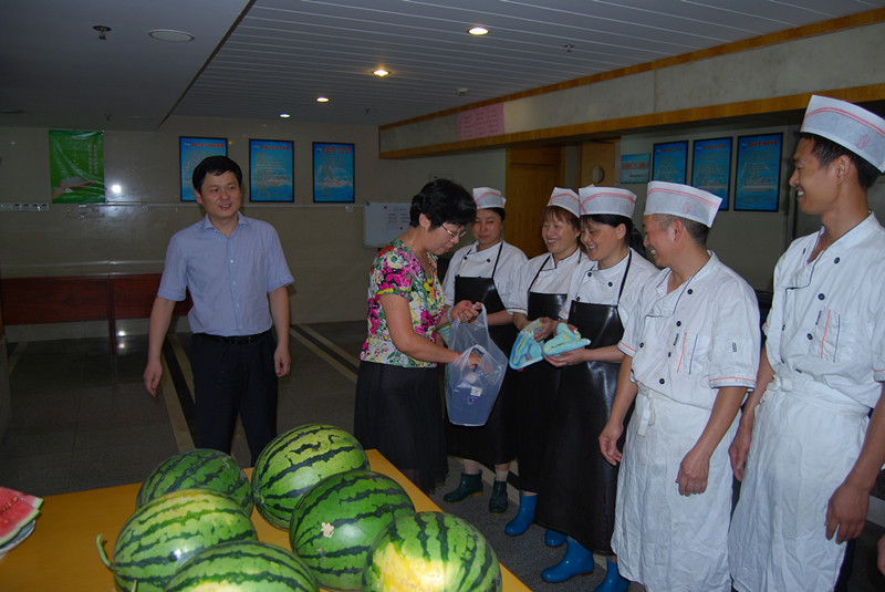 酷暑盛夏之际,7月31日上午,省公司副总经理杨晓彬率工会、办公室人员到盐业大厦职工餐厅开展“夏日送清凉”慰问活动,为坚守在高温环境下工作的餐厅工作人员送去了毛巾、西瓜、茶叶等清凉用品,表达了省公司领导和大厦全体职工对他们的关心。餐厅工作人员非常感谢省公司的关怀,并表示要进一步做好本职工作,提高饭菜质量和服务水平,更好地为广大职工服务。