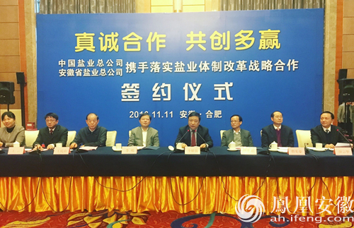2016年11月11日,安徽省盐业总公司与中国盐业总公司在合肥签署战略合作协议。安徽省国资委、经信委等部门领导,中国盐业总公司党委书记、董事长李耀强,安徽省盐业总公司党委书记、总经理詹先豪等领导共同出席签约仪式。中国盐业总公司所属中盐上海、中盐安徽、中盐长江、中盐金坛、中盐新干、中盐舞阳等二级企业主要领导也共同参与了此次活动。