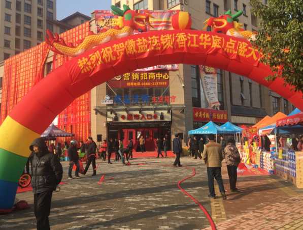 香江华庭店地处池州市西北外环大道旁,位于三江明珠置业、杨浦安置点、香江名庭置业的主入口处,核心商圈居民达2000户,次商圈可辐射香格里拉大型小区和实验小学分校,客流量大,易于驻客。该店营业面积1095.29平方米,是池州市徽盐商贸倾力打造的大型生活超市,经营定位为食品加强型,其中食品类占50%,日化百货类占30%,生鲜类占20%。香江华庭店是池州市第6家“徽盐连锁”直营店,也是池州目前规模最大的“徽盐连锁”超市。开业当天,店内营业额达12.57万元,开业三天店内营业额累计25.76万元。