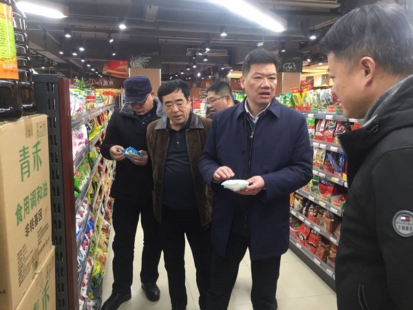 邱军一行深入农贸市场、批发市场、连锁商超察看食盐市场占有情况、盐品铺货情况。现场查看了仓库,了解商品库存情况。