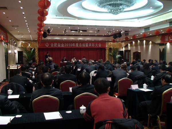 窗外寒风刺骨,室内春意盎然。2010年1月28日下午,合肥盐业2010年度总结暨表彰会在安徽饭店召开。这次会议的主要目的是,总结回顾2010年各项工作,研究部署2011年主要工作,进一步统一思想,提高认识,坚定信心,凝心聚力,为实现合肥盐业的科学发展、跨越式发展而共同奋斗。市公司全体员工、县公司领导班子、中层干部及受表彰的人员共120余人参加了会议。会议由市公司副经理温树堂主持。