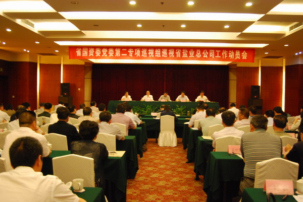 2015年5月29日上午,省国资委党委第二专项巡视组巡视省盐业总公司工作动员会在肥召开。省国资委党委委员、纪委书记、省国资委巡视办主任方无到会并代表省国资委党委巡视工作领导小组作了讲话;省国资委党委第二专项巡视组组长罗太忠作动员部署讲话;省盐业总公司(局)党委书记、总经理詹先豪主持会议并作表态发言。省国资委党委第二专项巡视组全体成员,省公司领导班子成员出席会议;各市公司、各直属(控股)公司领导班子成员,省公司本部处室负责人以及部分职工代表参加了会议。