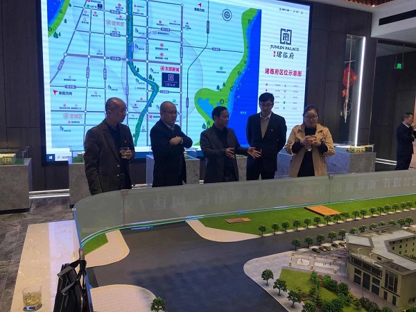 活动最后,以党建引领业务,推进党建与生产经营的深度融合,王晟书记邀请霍邱县民政局、岔路镇、养老院的领导们前往徽盐珺临府售楼部,为大家介绍项目情况以及产品的市场定位,让项目的营销宣传进一步深入霍邱当地。