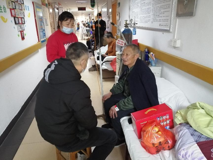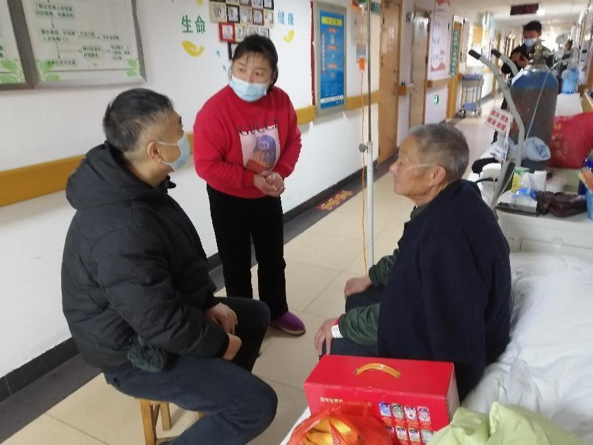 安庆市盐业公司结对帮扶责任人在医院向主治医生详细询问老人的病情及治疗情况,并与其本人及家属进行了亲切的交谈,在得知他因担心治疗费用而产生焦虑情绪时,帮扶责任人耐心开导,向他详细讲解健康扶贫、新农村医疗合作等政策,消除其后顾之忧,鼓励他要保持积极乐观的心态和树立战胜病魔的信心,争取早日康复。
