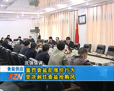 3月17日下午,我市召开紧急会议,对应对市场食盐抢购工作进行再部署,市委副书记、市长沈强参加会议并讲话。沈强指出,这次市场抢购食盐事件范围比较大,如果任其发展下去,将扰乱市场、扰乱社会,各县区、各部门要把刹住食盐乱涨价、抢购风作为一项政治任务,作为确保稳定的一件大事来抓,要采取各种手段,各种措施,坚决刹住食盐乱涨价、抢购风,维护正常的市场秩序,维护全市大局稳定。