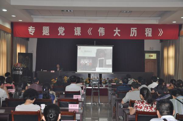 为纪念中国共产党成立90周年,根据省总公司党委、市直工委的要求,六安市公司于6月22日上午举行了“党的伟大历程”党课专题报告会。本次报告会由中共六安市委党校副校长李卓教授为公司职工讲授。 报告会上,李卓教授分三个阶段详细介绍了中国共产党从1921年建党至1949年中国共产党领导新民主主义革命取得胜利的28年光辉历程,1949年至1978年中国共产党建设社会主义取得成功的30年伟大历程以及1978年至今建设中国特色社会主义取得飞跃的32年伟大历程。 通过这次报告会,加深了广大党员对党的历史、党的知识、党的理论和路线方针政策的认识;鼓舞激励广大党员干部群众以良好的精神风貌和优异的工作业绩向党的生日献礼。回顾中国共产党成立90周年的光辉历程,更加坚定了广大党员干部群众永远跟党走的信念。