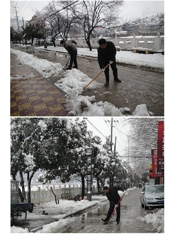 2月18日晚至19日凌晨,一场暴雪骤降,使得金寨县城被盖上了一层厚厚的积雪。骤降的暴雪让金寨城区公共道路十分湿滑,路上不时有抛锚的汽车,严重影响节日群众通行。19日上午8点钟,县盐业公司组织部分党员干部走上街头,参加义务扫雪,大家挥动铁锹扫帚边铲边扫,干得汗流浃背,忙得欢天喜地,感觉到能够为市民做一些好事真快乐。经过2个多小时的苦战,大家终于把临河岸边的道路积雪清扫的干干净净,为来往行人和车辆留下便捷的通道。盐业队伍用实际行动践行了奉献为民的价值观,收到过往行人的交口称赞。