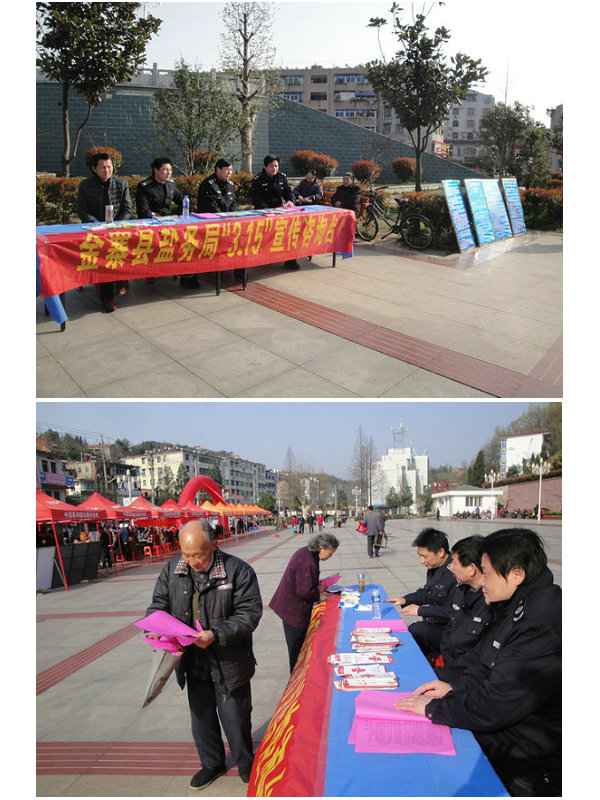 2013年3月15日上午,金寨县盐务局与县卫生局、县食药监局、县技术监督局、县工商局等有关部门积极配合,开展了以“杜绝伪劣食盐,促进健康发展”为主题的宣传活动,收到了良好的社会效果。活动中,该局盐政执法人员紧紧围绕盐政法律宣传的主题,热情向广大市民解答宣传食盐安全、真假盐鉴别及食用盐碘含量新标准等知识问答,进一步加强消费者自我保护和维权意识。工作人员还向市民积极引导推广低钠盐、海藻盐消费。活动当天,该局出动宣传车辆3台次,接待群众咨询200余人次,发放宣传材料800余份。