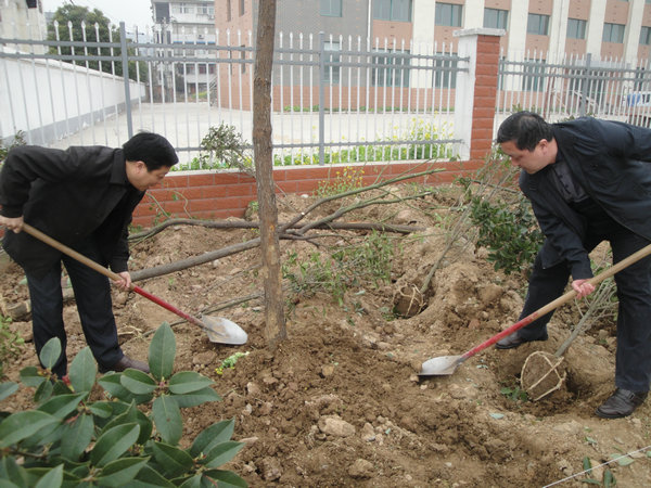 春回大地,万物复苏,时值阳春三月,又是一年植树时。按照金寨县委、县政府的统一部署和县委办《金寨县城2013年增绿工程实施方案》安排,2013年3月25日上午,金寨县公司干部职工10多人在经理周祥柱的带领下,集聚河滨新路,扬锄挥镐,把锹培土,开展义务植树活动。 金寨县公司认真贯彻落实“关爱自然、义务植树”志愿服务活动,积极投入到县委、县政府以“统筹城乡绿化,推动生态建设”为主题的“城市增绿”活动,干部职工挥锹培土,栽下了一棵棵树苗,为史河两岸增添了一道靓丽的风景线。据统计,当天公司共参与栽植桂花、香樟等树种千余株。大家的勤劳奋进,受到县领导的表扬,同时提升了公司形象。