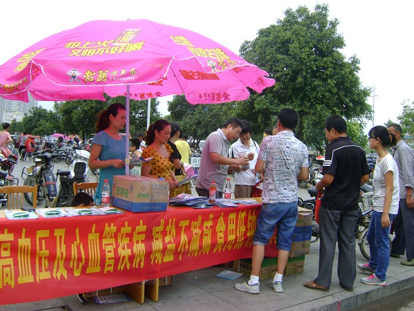 为满足城镇居民对高标准、高质量生活方式的要求,寿县公司在大力普及碘盐知识的同时,积极推广宣传250g低钠营养盐,大大提高了人民群众对低钠营养盐的认可程度。 寿县公司领导高度重视低钠盐的宣传推广,通过利用民间文艺团体踩街进社区,在县电视台播放滚动字幕宣传,组织职工双休日在新老城区超市、菜市场、路口设立咨询宣传台等多种方式,与消费者深入交流,向他们反复讲解低钠盐能降低血液中胆固醇的含量,特别适于高血压和心血管疾病患者食用等优势。通过宣传,广大消费者对低钠营养盐的了解程度大大加深。目前,低钠营养盐已在寿县各大商场超市均有销售。