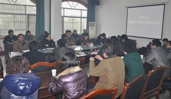 3月1日,六安市公司召开2011年目标责任落实会议,会议由姚琦副经理主持,市公司领导班子、全体中层干部、县公司领导班子参加了会议。 会议对2011年目标责任书中的重要指标做了详细说明,分析了市县公司1、2月份的经营情况,对下一阶段的重点工作进行了部署。市公司与5家县公司分别签订了2011年度经营目标责任书。 姚安生副经理在会上作了发言,他要求:一、认真学习詹总工作报告和省总公司十二五规划,深刻领会其精神实质,全面贯彻和落实全省盐业工作会议精神。二、坚定不移地完成2011年各项目标任务,把握机遇,取得阶段性实质成果。三、在学习和深入理解省总公司十二五规划的基础上,各县公司要结合自身实际,提出各自的发展目标,做好十二五规划工作。四、推进各项工作的细化深入,转变作风,提高工作效能。