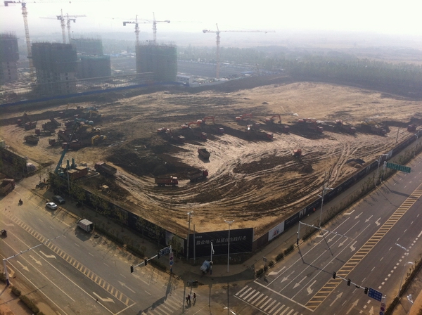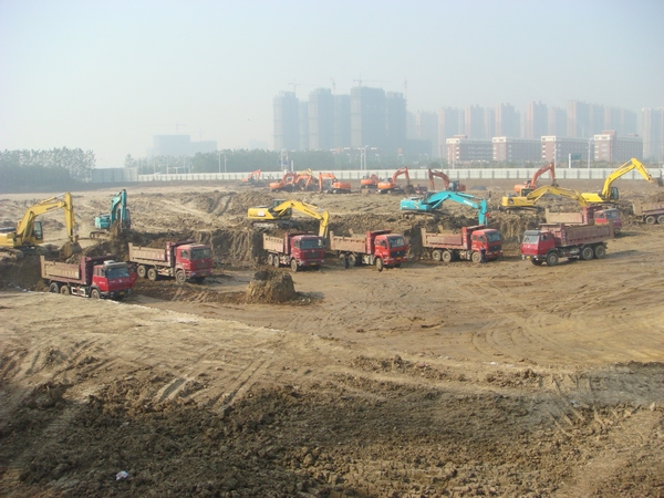 盐业房地产公司合肥滨湖项目自9月份项目住宅部分的土方工程启动以来,现场施工如火如荼, 17台大型挖机,约120辆工程车,全线开挖,每日外运土方量约2万方,为下阶段的桩基施工打开了充足的工作面。