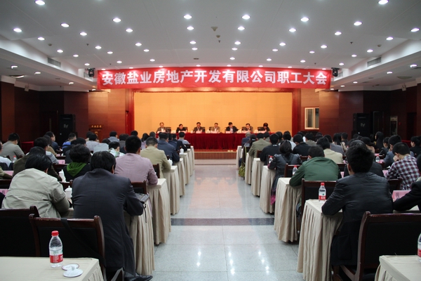 4月3日至4日,盐业房地产公司职工大会在合肥市华都宾馆隆重召开。省公司总经理、盐业房地产公司董事长詹先豪主持大会,省公司副总经理、盐业房地产公司董事杨晓彬,盐业房地产公司全体领导班子成员出席会议,来自盐业房地产公司本部以及所属定远、六安等项目的95名职工参加了会议。