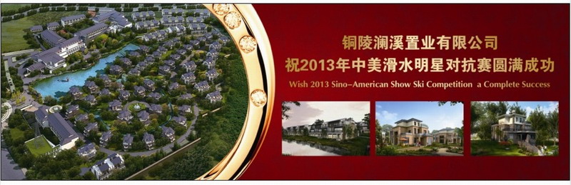 “美丽仲夏季、相约祠堂湖”,享有“水上芭蕾”之誉的2013年中美滑水明星对抗赛6月15日在铜陵市大通镇祠堂湖隆重上演。