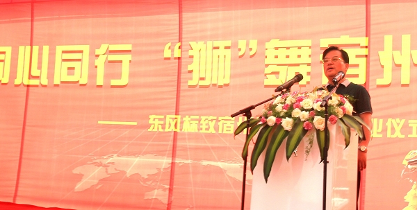 宿州润标汽车销售服务有限公司董事长姚敦静代表全体股东致辞。他回顾安徽盐业弘德实业发展有限公司在宿州建设安徽盐业汽车城,敢为人先建设汽车4S店的历史,已先后建成东风本田、东风悦达起亚、东风雪铁龙、东风标致等4家4S店,发展成为宿州市最大的汽车经销集团。东风标致4S店响应“十八大”发展混合所有制的倡导,严格按照厂家要求,高标准规划、高效率建设的集销售、服务、零配件及信息反馈四位一体的现代化专营店,不仅填补了宿州市场的空白,还将为广大车主提供优质便利的服务。