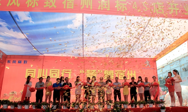 5月18日,位于宿州经济开发区安徽盐业汽车城的宿州润标汽车销售服务有限公司东风标致4S店隆重开业,并举行了盛大的开业仪式。东风标致厂家、4S店全体股东及宿州市新闻媒体、金融企业、开发区有关部门等数十家单位参加了开业仪式。