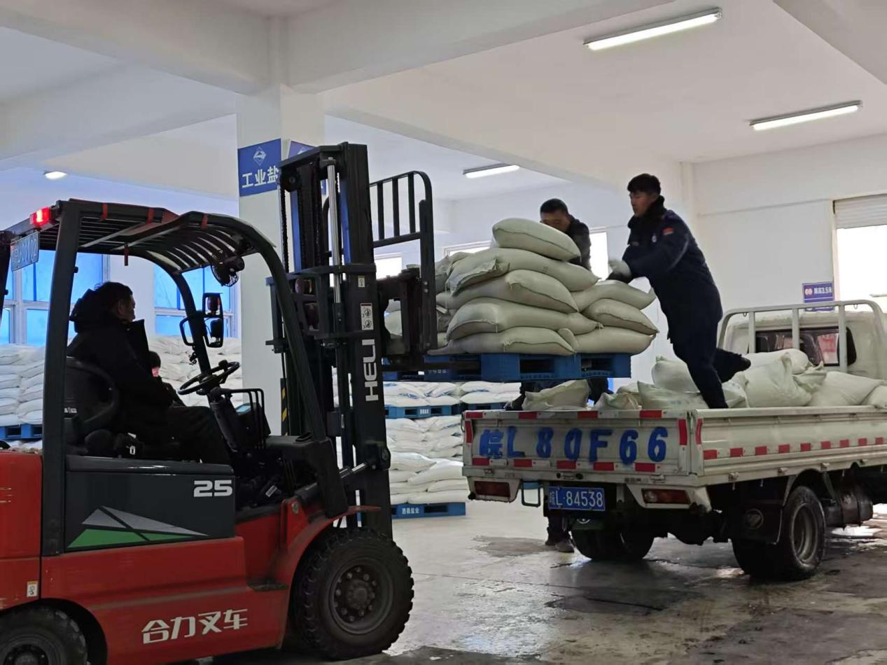 大雪来临前,为确保物资充足,安徽盐业从严从实做好应急准备,全面核查各级储备库存,市县盐业公司提前优化储备布局,备足融雪盐。根据全省各地降雪情况和融雪盐需求情况,通过“需求收集—快速调运—精准配送”的闭环工作链,确保指令下达零延迟、物资调配零误差。