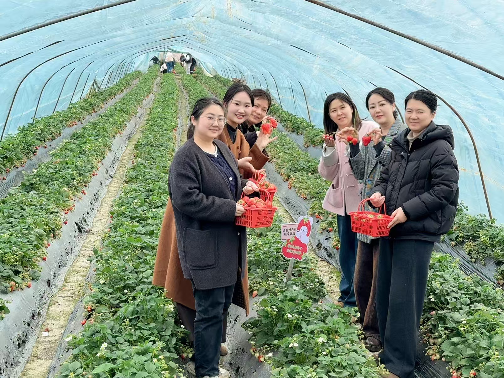 活动当天,阳光明媚,暖意融融。走进采摘大棚,清新果香扑面而来,翠绿藤蔓间,颗颗草莓鲜红饱满,在春光的映照下格外诱人。在工作人员讲解采摘技巧后,大家手提果篮,化身田园体验馆,弯腰亲摘、细心挑选,一遍分享心得、一边拍照打卡,沉浸式体验着采摘带来的快乐与成就感,将工作的疲惫与生活的琐碎都消散在这片清甜之中。