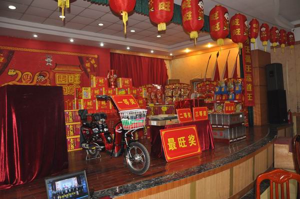 六安市公司经理姚安生、旺旺集团合肥公司营销总监朱大明、六安办事处负责人吴自贵和100多位旺旺产品经销商参加了订货会。姚安生向参会的经销商致答谢词,旺旺集团销售管理处总处长黄永松以视频方式祝贺订货会顺利召开,旺旺集团员工表演了精心准备的团体歌舞节目。订货会还现场为参会经销商抽取了一、二、三等大奖,六安三十铺的大地物流更以单笔12万元的订货金额夺得当场标王大奖,获得联想笔记本电脑一台。