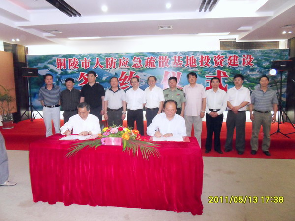 铜陵市人防办杜连成主任、铜陵澜溪置业有限公司陈应忠总经理代表合作双方分别在合作协议上签字。
