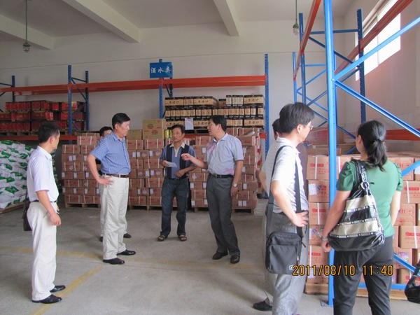 蚌埠市公司领导实地察看了长丰县公司配送中心仓库,详细了解了配送中心商品种类、商品陈列等相关情况。在座谈中,长丰县公司经理李金顶对蚌埠市公司领导的到来表示热烈欢迎,并向蚌埠市公司领导简要介绍了配送中心项目建设及商品经营情况。长丰县公司配送中心目前设有7个客户部,配送车辆4台,配送的商品品种包括酒类、日化类、调味品类和各种盐品等,截止到2010年底,已建成加盟连锁农家店54个,直接配送的网络终端客户1600多家。自2010年11月申报配送中心建设项目以来,按要求对原有的设施进行了改造,安装了三层货架;盐品和非盐产品、食品类和日化类分类存放,做到堆码整齐,标识清晰。同时,对软件资料进行整理和收集,完善了配送中心相关制度。今年5月20日配送中心技改项目顺利通过省市场体系建设项目验收组的验收。
