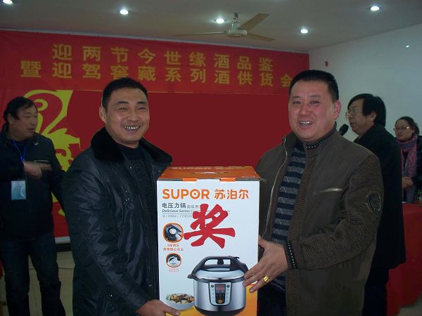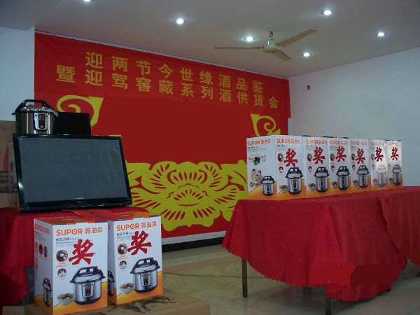 为保障此次供货会的顺利召开,凤阳公司从11月初开始精心组织策划,对各乡镇的流通大户进行了邀请,并对此次活动具体情况逐一向客户作了详细介绍,由于本次供货会采用有奖销售的形式,奖品价值大,中奖率高,现场销售踊跃,得奖客户满心欢喜,供货会获得了圆满成功,现场销售迎驾窖藏系列酒20多万元。