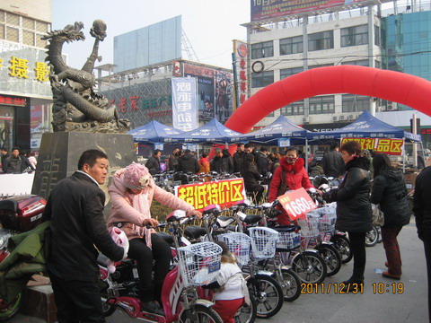 在新年来临之际,萧县公司在县城繁华地段“龙广场”举办了一场欧派电动车促销活动,同时进行电动车以旧换新、购车有奖和参加现场抽取千元大奖活动。活动现场百余辆崭新的多款电动车排放有序,并有演职人员歌舞助兴,人潮涌动,热闹非凡。