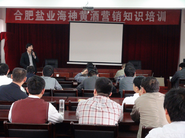 为进一步加强合肥市公司营销人员对海神黄酒相关知识的了解,掌握黄酒市场的营销技巧和方法,近日,合肥市公司举办了海神黄酒营销知识培训。海神集团销售部部长曹勇、区域经理张云飞应邀出席培训会,市公司代理经理颜宗华、副经理张革和各营销部相关人员、客户经理共23人一同聆听了专家的讲解和介绍。