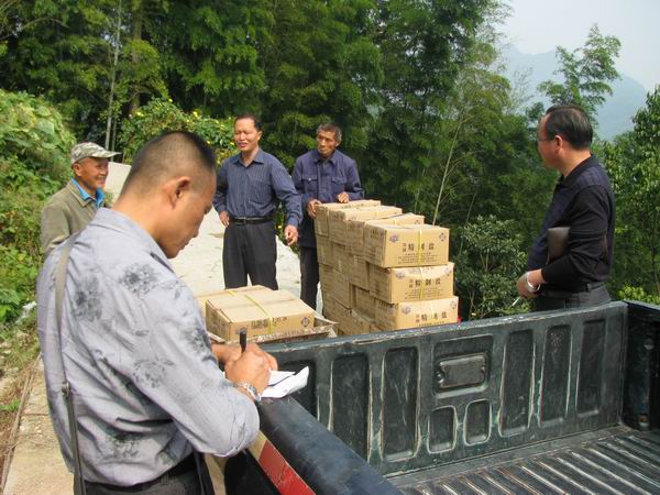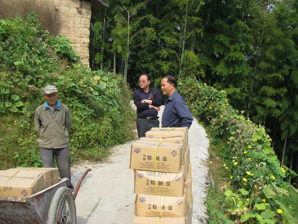 为了提高市场占有率,保证本辖区内居民吃上合格的碘盐,保证配送不留盲区。10月10日,黄山市公司领导带领盐政、营销配送人员满载一车食盐,通过高速公路途经浙江开化县马金、淳安县中洲镇再从中洲镇泰厦顺着崎岖狭窄的盘山小道,经过三小时到达坐落在山顶的休宁县白际乡项山村。