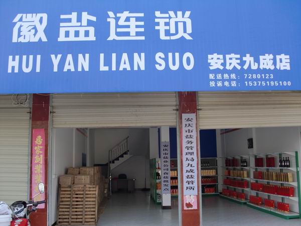 安庆市盐业公司徽盐连锁九城店位于离安庆城区一百多公里的九城畈农场,是安庆市食盐销区之一。为构建徽盐连锁网络建设,巩固食盐销区市场,安庆市公司前期做了大量的工作。目前直营店主要经营各类盐及酱油、老泸州酒、卡斯特干红酒等商品的批发和零售。