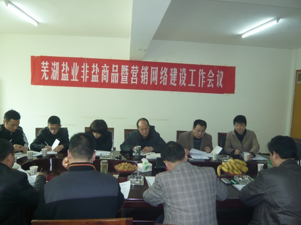 为加大非盐商品销售营销网络建设工作力度,3月25日,芜湖市公司组织召开非盐商品和营销网络建设工作会议,参加会议的有一市三县公司主要负责同志、分管经理及相关部门负责人。会议分上下午进行,会议由市公司丁奇副经理主持,会议主要内容是:1、讨论研究如何扩大非盐商品销售,对商品定位、销售渠道拓展、促销措施及激励办法进行研究讨论,并提出具体工作意见;2、如何巩固和扩大营销网络建设工作,加大直营、加盟、自由连锁、协议合作四种方式网络体系建设;3、如何扩大小包装食盐、食品加工用盐和工业用盐销售。